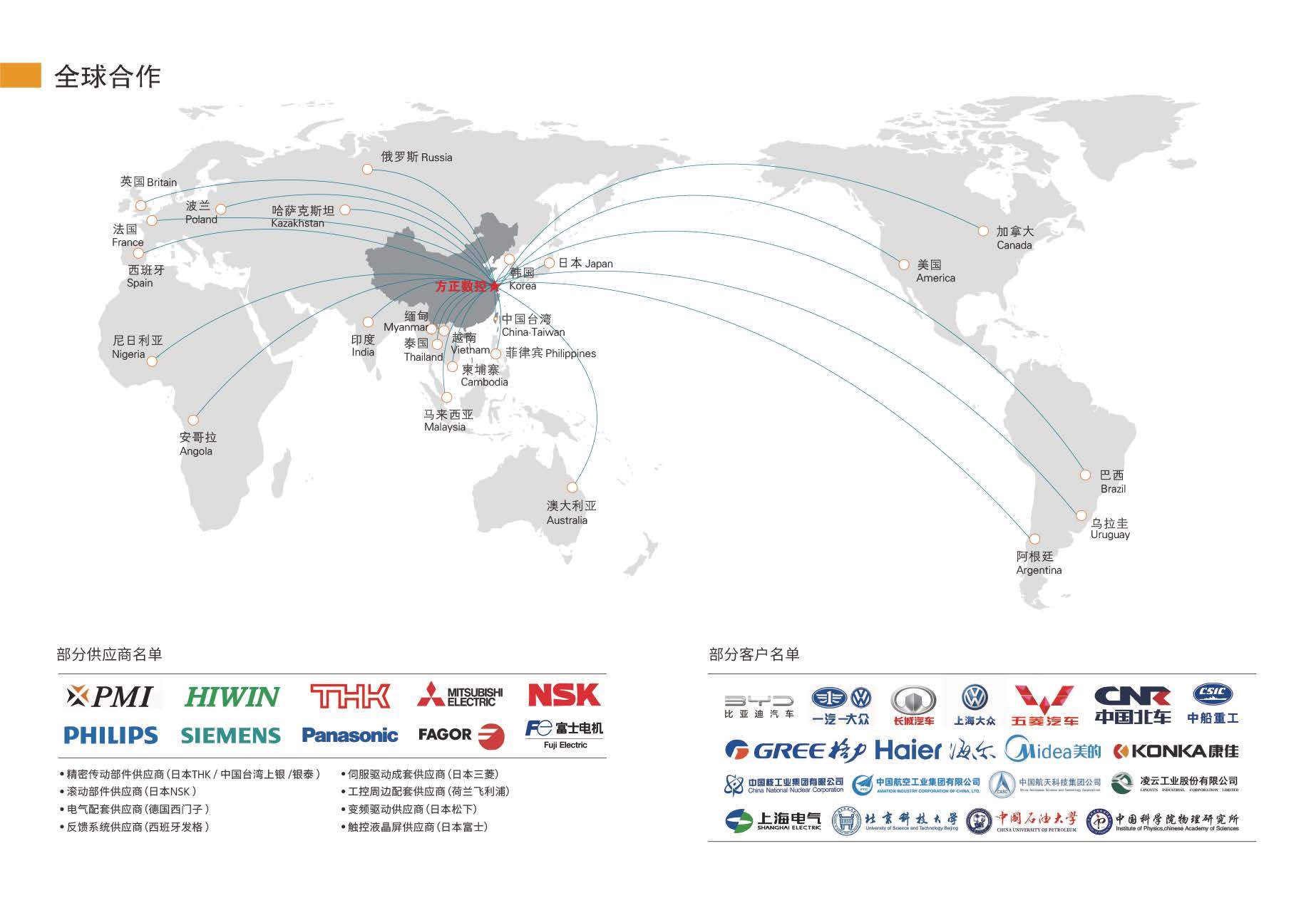 公司始終堅持“科技創(chuàng)新、質(zhì)量為主、環(huán)保節(jié)能”的科學(xué)理念,研制出具有方正特色的新產(chǎn)品。憑借優(yōu)越的產(chǎn)品性能,完善的售后服務(wù),贏得廣大用戶的一致好評,使方正品牌在中國、乃至世界范圍內(nèi)美譽(yù)度大幅度提升,本單位為國內(nèi)極少數(shù)擁有三體系認(rèn)證(ISO9001:2015質(zhì)量管理體系認(rèn)證、ISO14001:2015環(huán)境管理體系認(rèn)證以及歐盟CE出口質(zhì)量認(rèn)證)的企業(yè)。產(chǎn)品銷售遍布全國三十多個省市和自治區(qū) ,并遠(yuǎn)銷歐美、東南亞、中東等世界各地。目前本公司數(shù)控機(jī)床廣泛應(yīng)用于汽車行業(yè)、國防軍工、航空航天、軌道交通等重點(diǎn)行業(yè)核心制造領(lǐng)域。